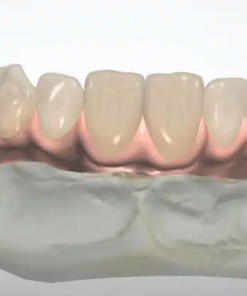 - Monolithic Zirconia: Full contour design with “Cut-back” only in the gingival area for pink porcelain layering.